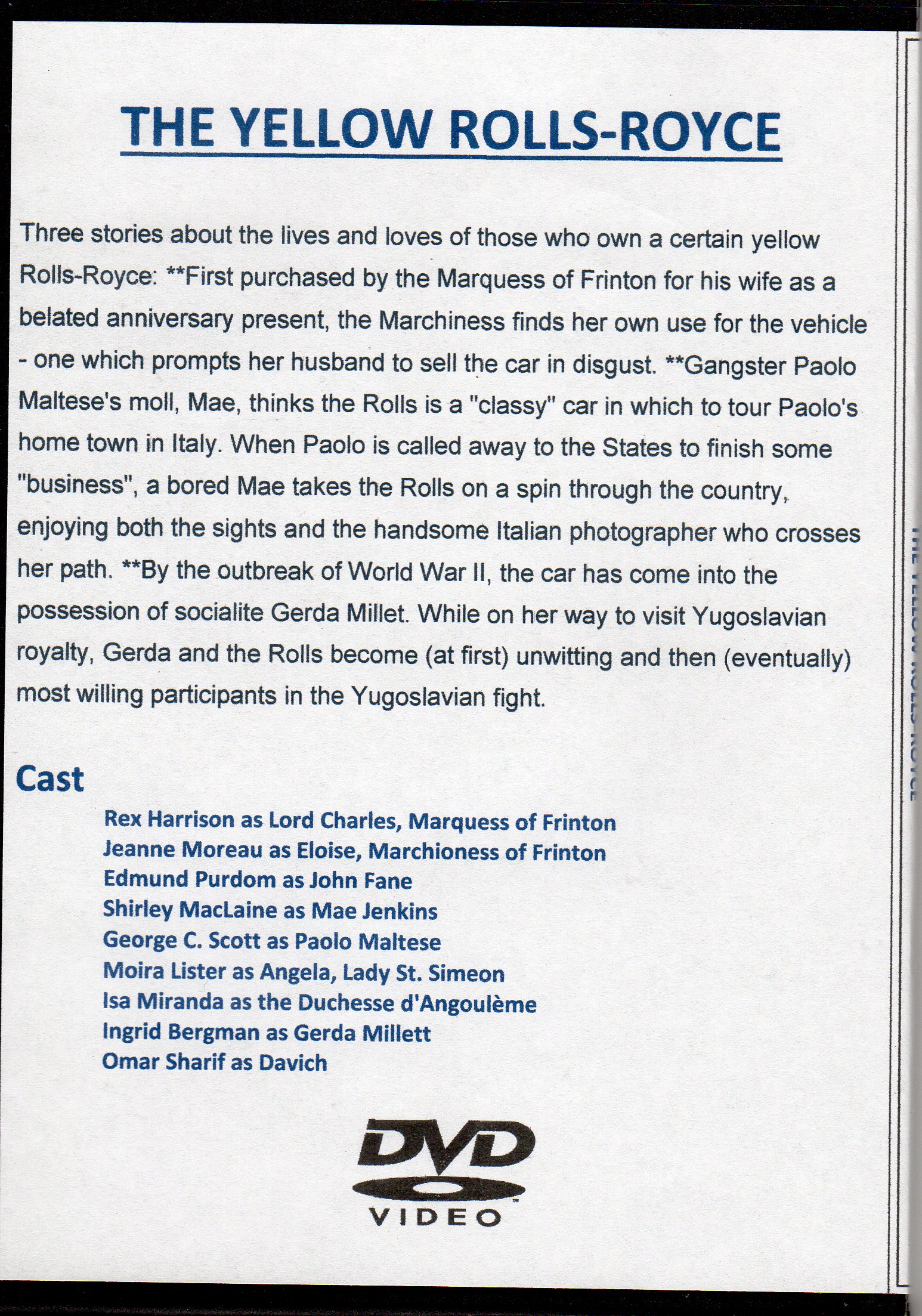 YELLOW ROLLS ROYCE - STARRING INGRID BERGMAN, REX HARRISON & OMAR SHARIF ALL REGION DVD